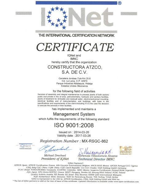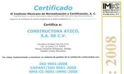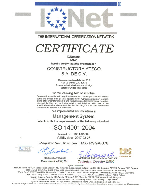 Constructora Atzco estamos conscientes de que la Calidad, la Seguridad y la Salud laboral de nuestros trabajadores así como el respeto al Ambiente, son requisitos cuyo compromiso y cumplimiento debe ser una labor permanente en todas las actividades que llevamos a cabo.